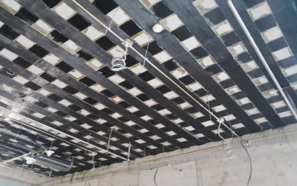 5.采用碳纖維加固法加固施工后,裝飾施工時(shí)無須處理界面,只在碳纖維片材施工較后工序時(shí)灑砂粘貼即可。